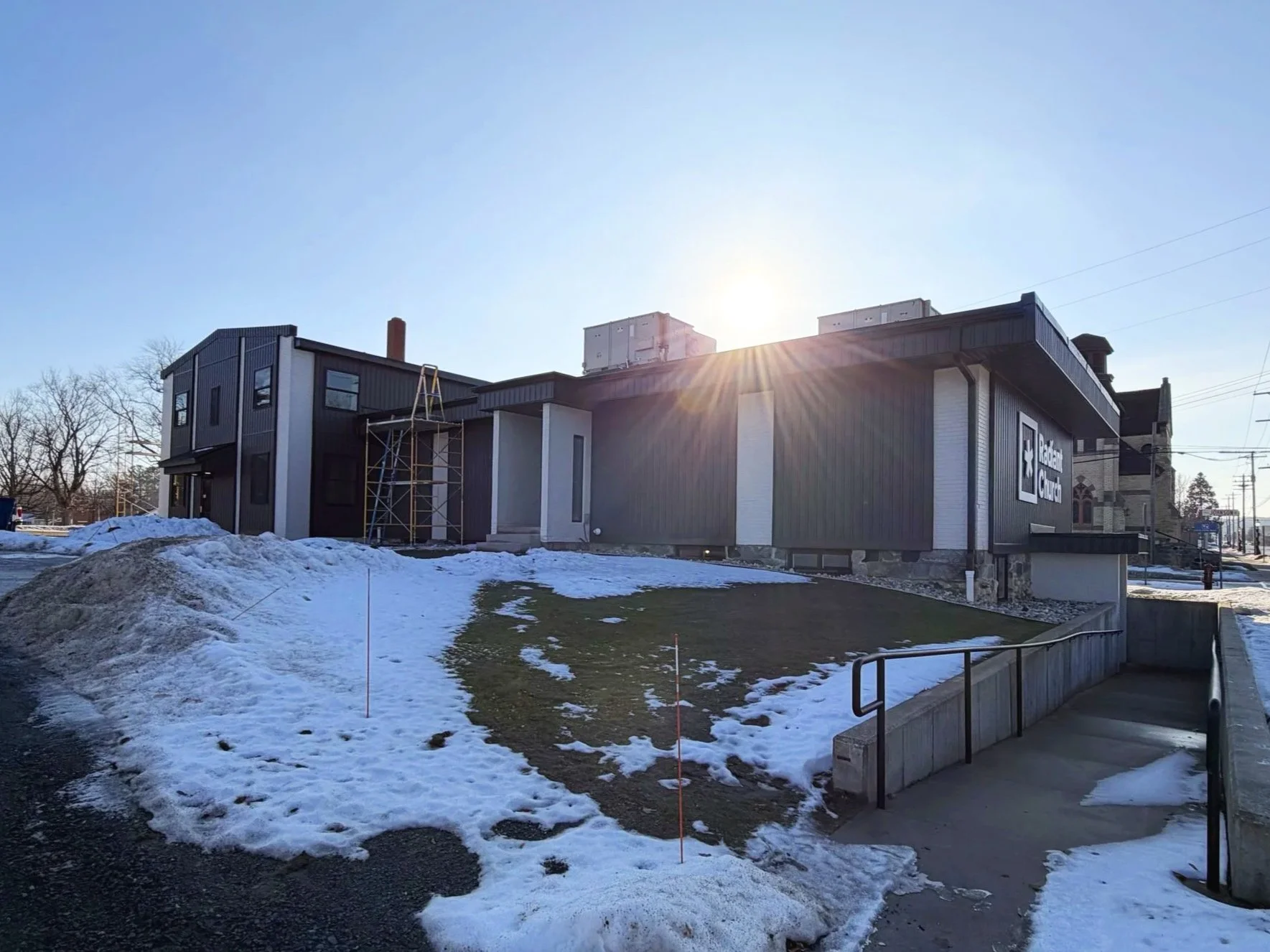 Parking: We have a free parking around our building, including designated visitor and handicapped parking. There is also ample street parking. If you need assistance, please flag down one of our friendly parking lot volunteers. Please avoid parking in the Methodist Church parking lot to our north. We want to be good neighbors to them.